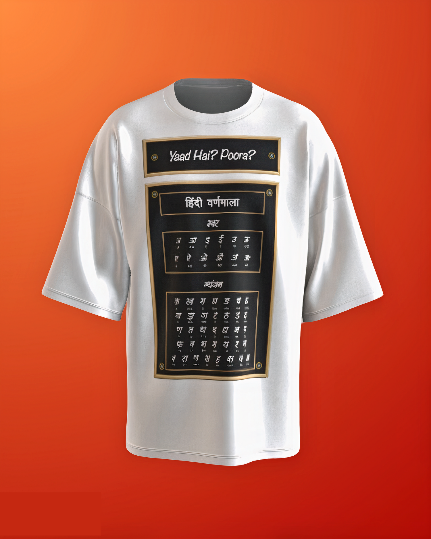 - White T-shirt represents those who are "PROUD" and remember the Hindi "Varnmala"... Poora!